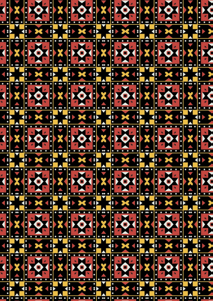 Ce tissu traditionnel angolais a longtemps accompagné les moments clés de la vie sociale et spirituelle, il est porté lors de cérémonies, de célébrations et de rites importants. Ses motifs composés de formes géométriques répétées représentent la continuité, la protection, la force collective et la transmission entre les générations. Plus qu’un tissu, il était un marqueur d’appartenance, de statut et de lien à la communauté.