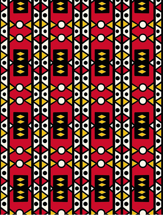 Reconnaissable grâce à ses motifs géométriques comme: le carré, le rond, le triangle, le rectangle, le trapèze et le losange qui selon les contextes culturels évoquent : l’unité et la cohésion du groupe, la continuité de la vie, la force collective, la protection spirituelle et l’équilibre entre l’homme, la nature et les ancêtres.